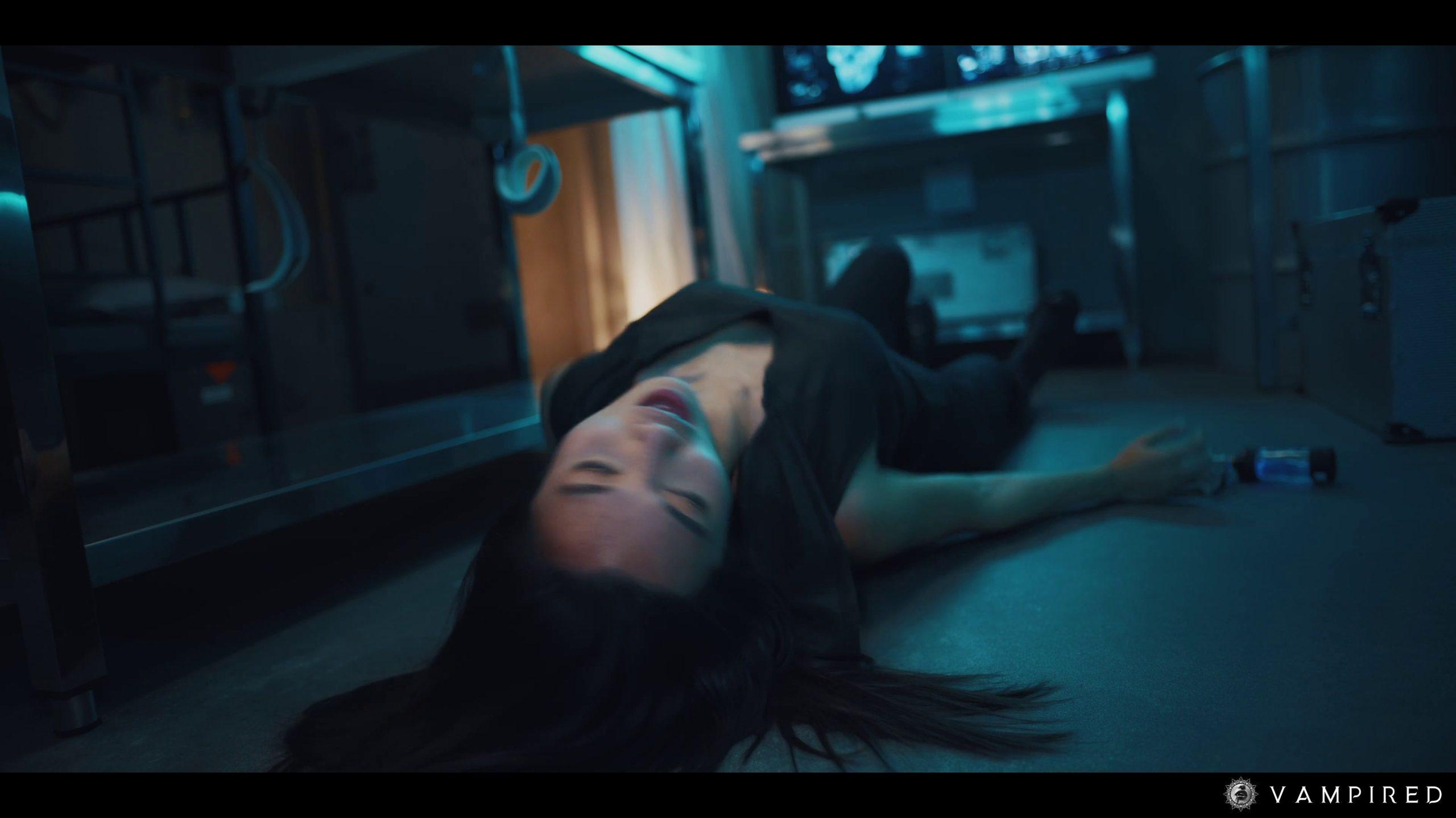 Strapped down to an operating table, the night dweller’s attempts to seduce Lucy into becoming just like her, only for Lucy to continue the experiment. She injects the night dweller with the experimental cure, unaware that the creature has broken from her restraints. The night dweller attacks Lucy, biting her on the neck and initiating her transformation.